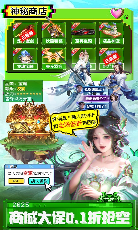 【0.1折畅玩,上线三天横扫满阶神兽、UR神兵、GM套装!享受真低折福利】