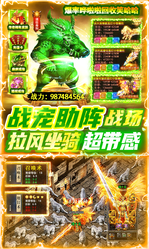 《雷神战纪》是一款忠实还原经典版本的单职业打金传奇,完美复刻传奇的核心玩法,主打怀旧、公平、自由PK。全爆率满攻速横扫沙城,自动吸金激情打宝,行会公会兄弟协力合击征战玛法,跨服勇者同屏冒险激斗!游戏所有装备全靠打,回归最纯粹的传奇体验!
