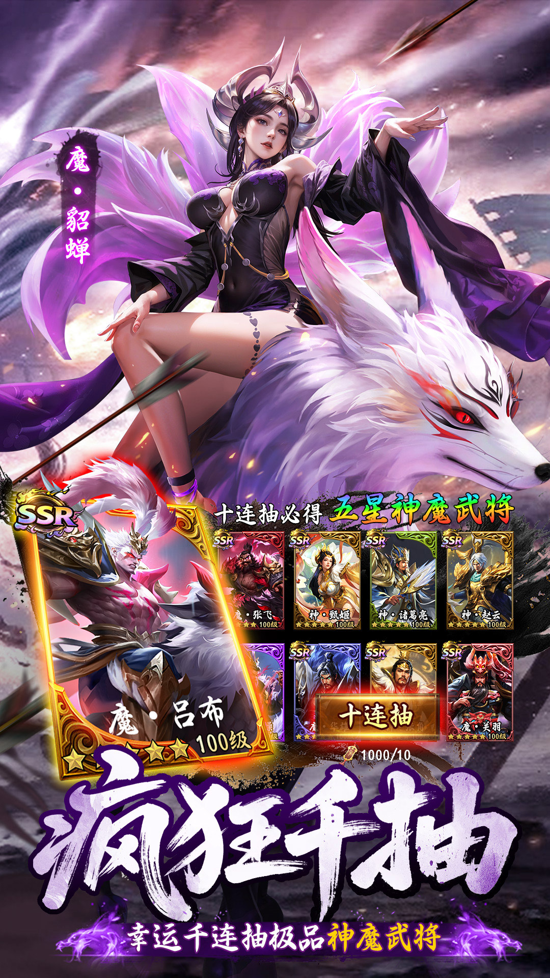 上线即送“千抽”特权,抽到心仪神将再开局!更享千抽自选池,十连必出强将,轻松组建豪华阵容,开局即具问鼎三国之势!