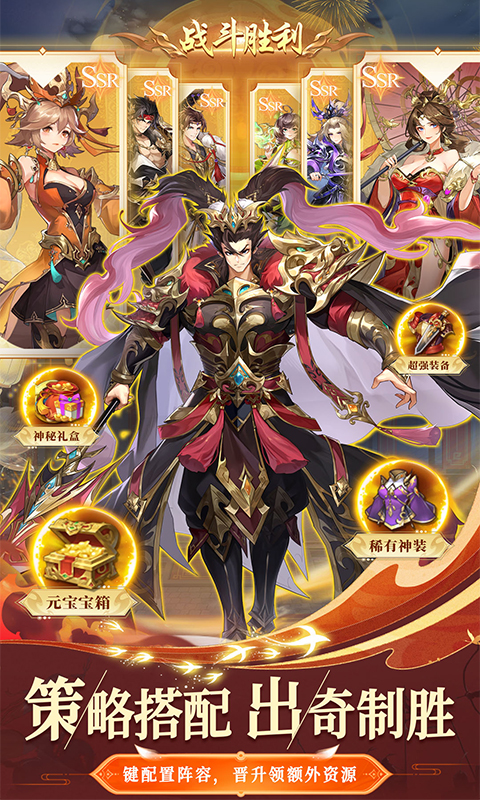 游戏内闯关送400连抽福利,可提前预览抽取结果,达到等级即可领取。自选阵容武将,搭建满配阵容不是梦!百位武将,多个阵营,策略搭配更能让你所向披靡,战无不胜。